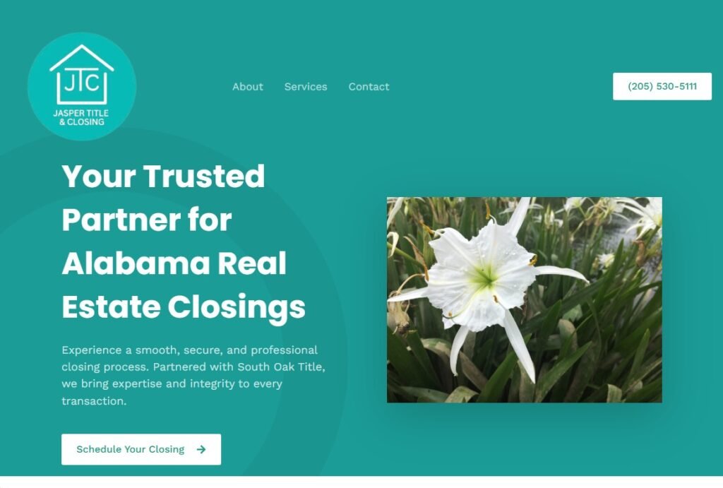 We created a clear, trustworthy website for Jasper Title & Closing, a premier Alabama real estate closing company. The design focuses on establishing reliability and expertise, effectively showcasing their core services like title searches and residential/commercial closings. The clean, professional layout provides essential information and clear calls to action, making it easy for clients to schedule their next stress-free transaction.