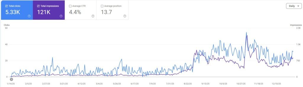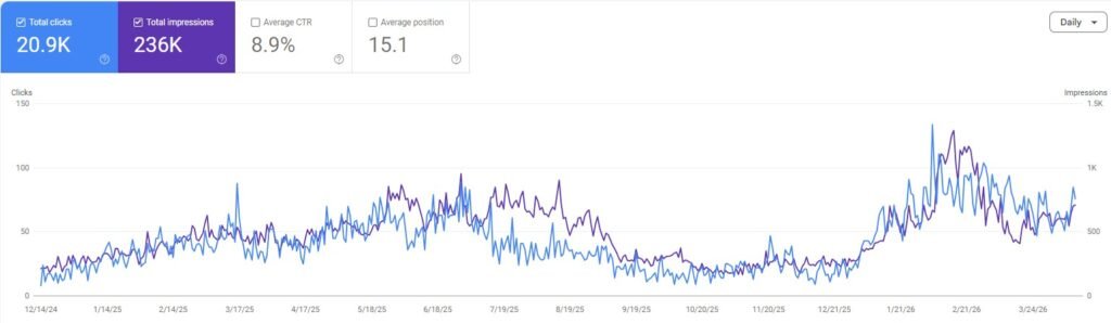 From flatlining to liftoff: 254% click increase in 12 months on a simple Shopify site.